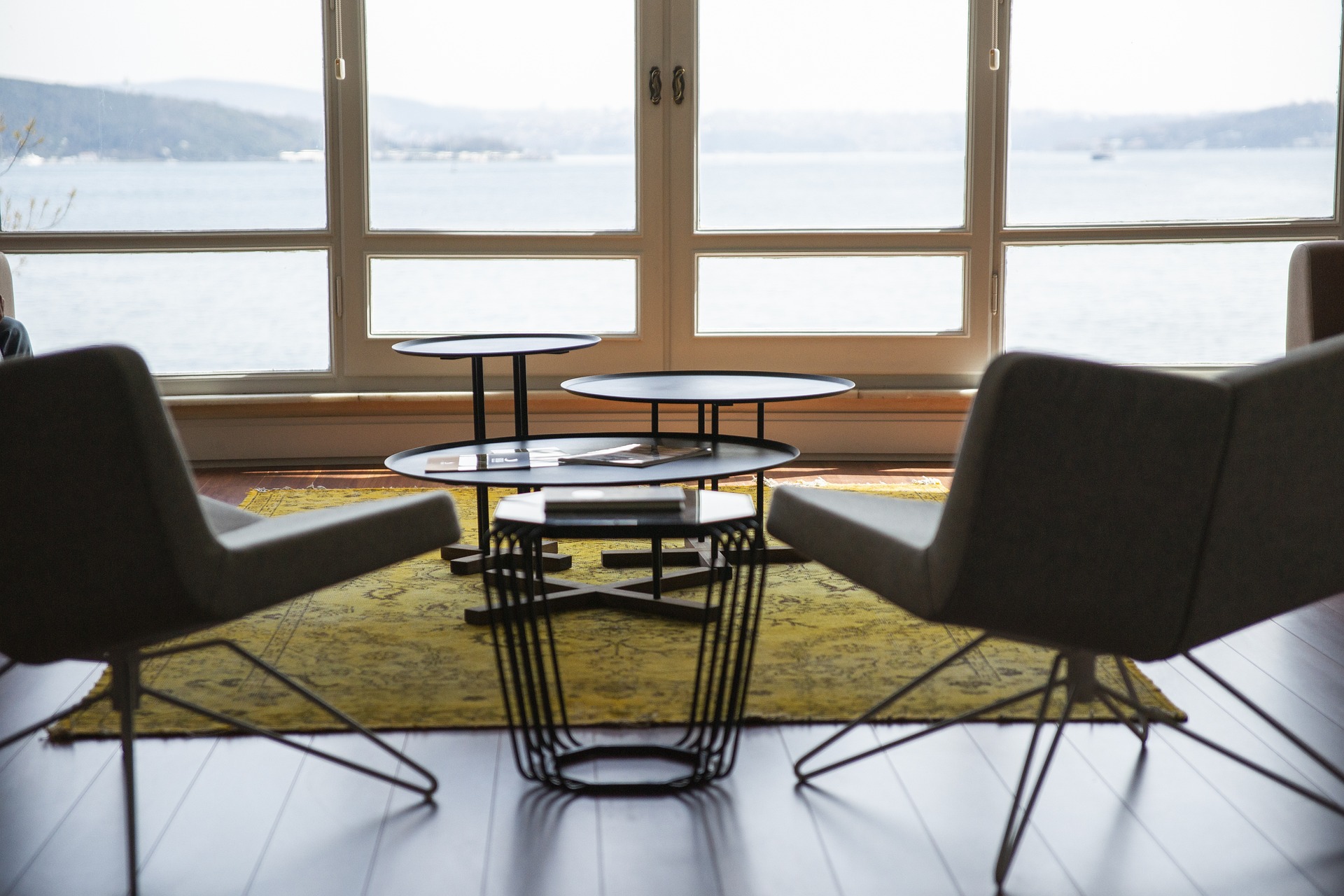 오션뷰가 있는 통창 거실입니다. 바다에 집중할 수 있도록 불필요한 것을 없앴습니다.